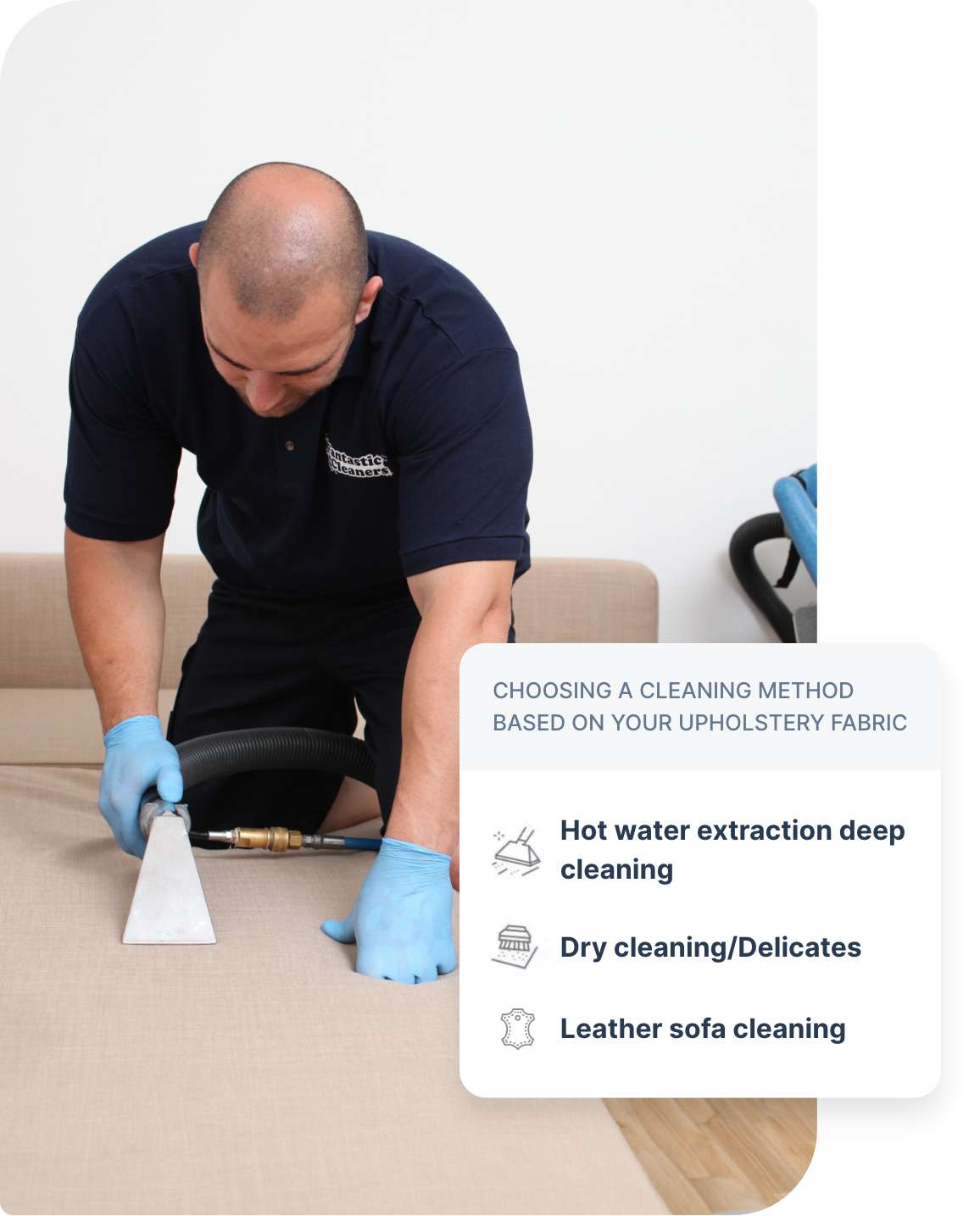 Our service goes beyond cleaning - we eliminate unpleasant odours and sanitise sofas using eco-friendly, anti-bacterial treatments. Safe for children, pets, and allergy sufferers, this process removes bacteria, dust mites, and allergens, leaving your sofa fresh, hygienic, and ready for immediate use.